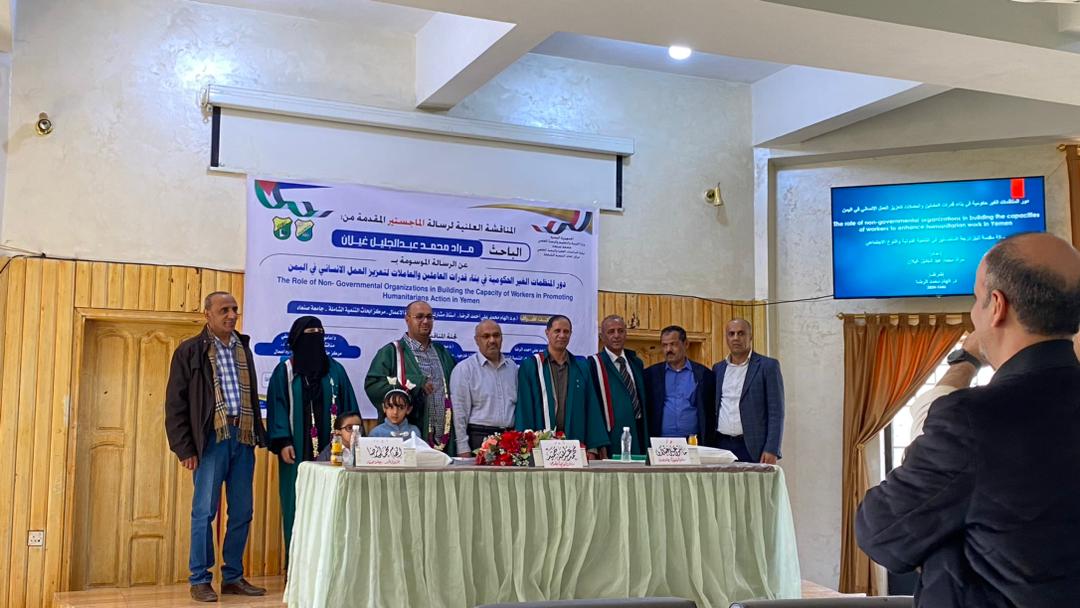 Researcher Murad Mohammed Abdul Jalil Ghaylan has been awarded a Master’s degree with distinction in Gender and International Development from the Inclusive Development Research Center at Sana’a University. His thesis is titled “The role of non-governmental organizations in building the capacities of workers to enhance humanitarian work in Yemen” and the defense took place on Wednesday, 15/07/1446 AH, corresponding to January 15, 2025.