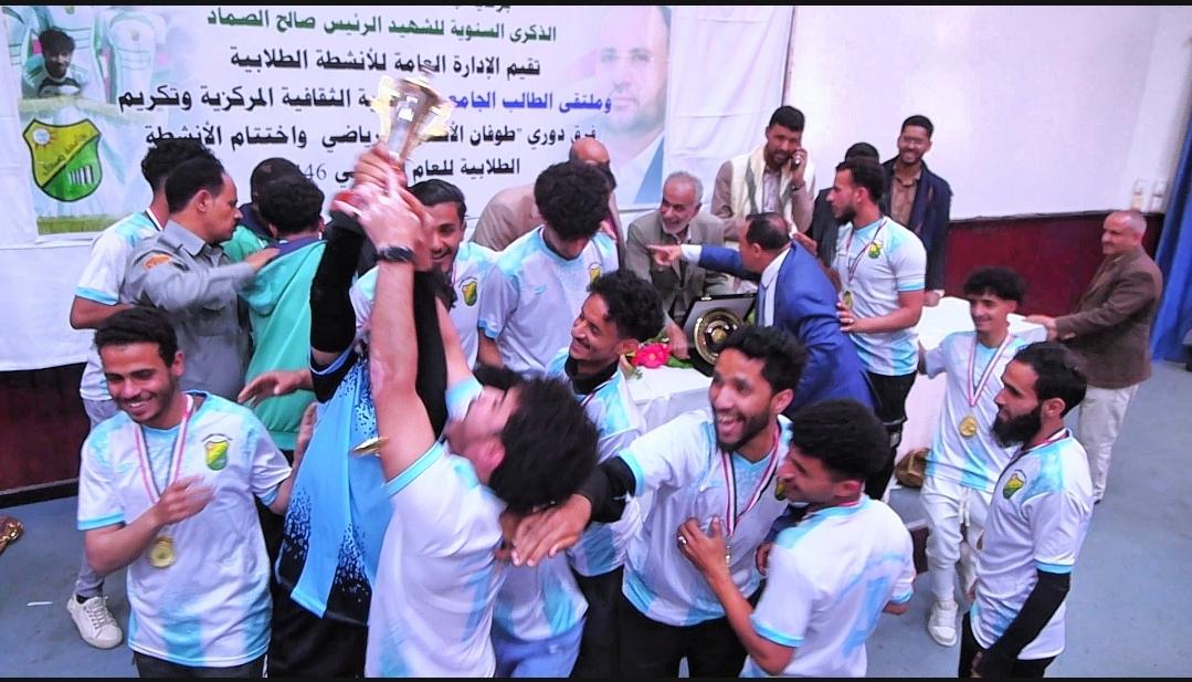 Under the patronage of the University’s Rector, Prof. Al-Kasem Mohammed Abbas, the General Administration of Student Activities and the University Student Forum organized a ceremony to celebrate the champions of Sana’a University Football League for the academic year 1445 AH (2024-2025). The event also honored outstanding participants in sports, cultural, and scientific activities across various faculties.