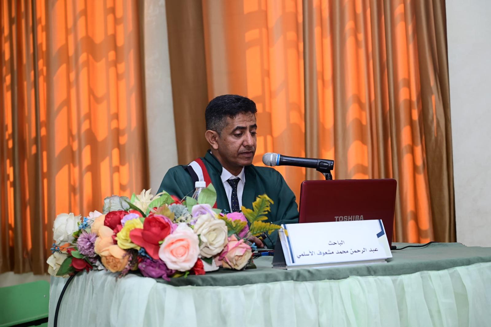 The Public Viva-Voce Examination for the MA Thesis hereto entitled, “The Effectiveness of Using Communicative Teaching Approach on Raising Learners’ Comprehension of English Medical Terminology at Medical Institutions in Sana’a”, submitted by Mr. Adulrahman Mohammed Mashof Al-Aslami , Department of English, Faculty of languages, was held on Wednesday, 20/08/1446 Hijri corresponding to 19/02/2025. The Viva-Voce Committee, which was formed based on a resolution issued by the Post-Graduate Studies and Scientific Research Council, consisted of the following: