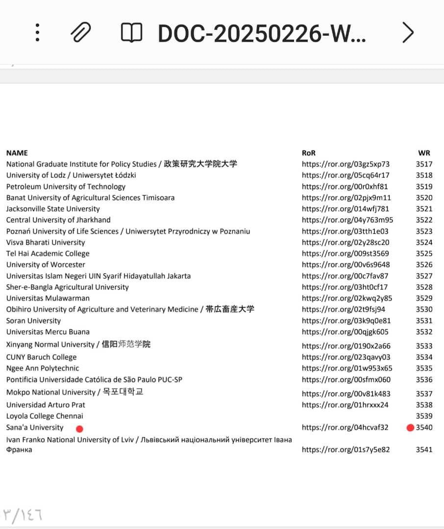 Sana’a University has climbed 22 places in the Webometrics World University Ranking issued by the Higher Council for Scientific Research in Spain for 2024.