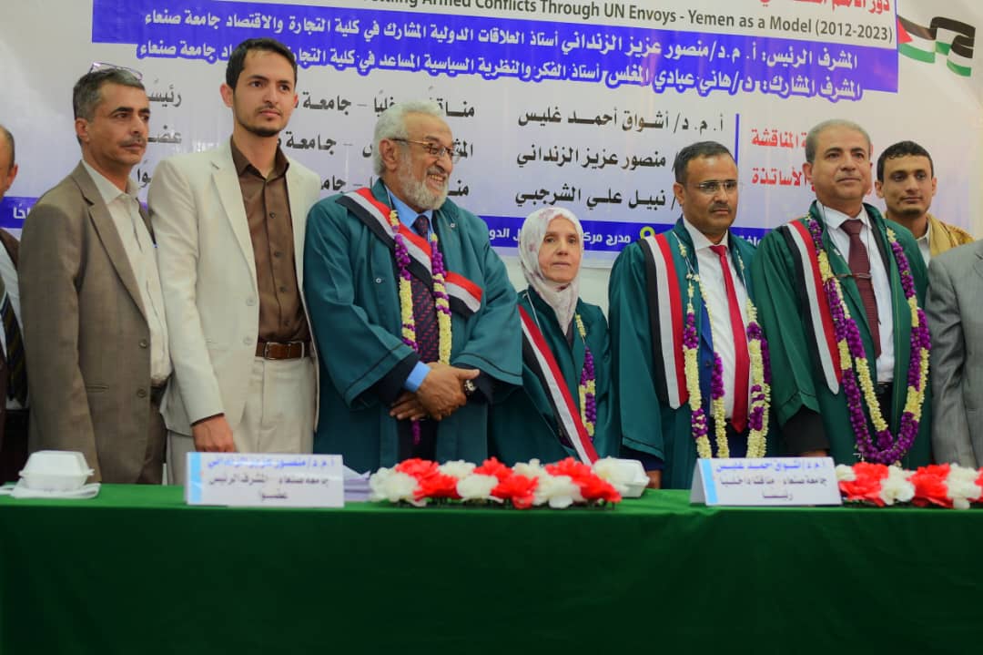 from Sana’a University for his thesis entitled “The Role of the United Nations in Settling Armed Conflicts through UN Envoys – Yemen as a Model 2012-2023”,