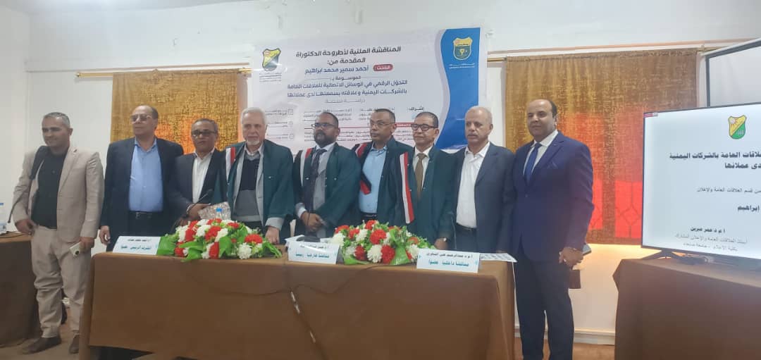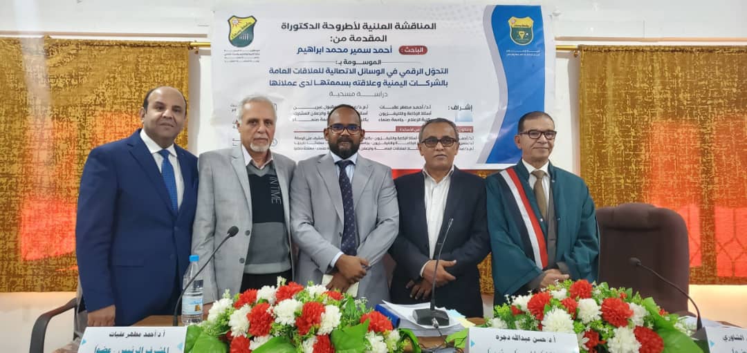 On 28th, December, 2024 researcher Ahmed Samir Mohamed Ibrahim obtained a PhD from the Department of Public Relations and Advertising, Public Relations at the Faculty of Media, Sana’a University, for his thesis entitled “Digital Transformation in Public Relations Communication Media in Yemeni Companies and Its Relationship to Their Reputation with Their Clients”.