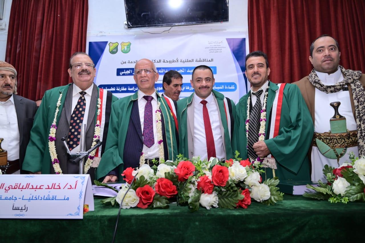 Researcher Abdul Majeed Abdullah Mohammed Dhafer Al-Jabali was awarded a Doctorate in Public Law from the Faculty of Sharia and Law at Sana’a University for his dissertation entitled: “The Efficiency of the Public Prosecution and Its Role in the Stages of Criminal Proceedings (A Comparative Applied Study).