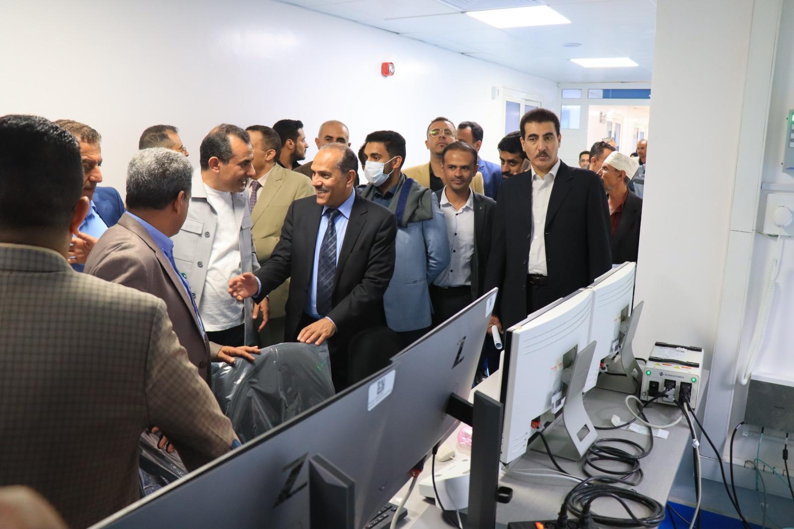 They were briefed by Dr. Salah Al-Shawki, Director of the Cardiac Catheterization Center, and Dr. Mohammed Al-Houthi, Deputy Director for Academic Affairs, on the nature of the medical and treatment services provided by the center, as well as the progress of preparations in the cardiac catheterization department.