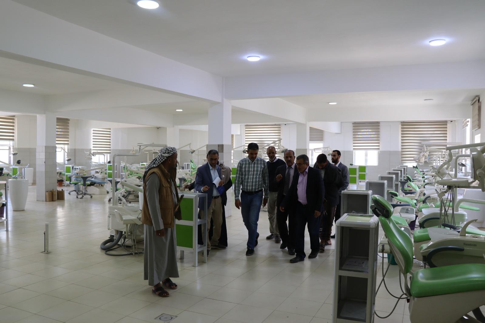 Accompanied by Prof. Ibrahim Al-Mutaa, Vice-Rector for Academic Affairs, Prof. Al-Bukhaiti toured the faculty’s laboratories and medical clinics, reviewing the educational workflow, technical systems, and infrastructure. He affirmed that the faculty’s resources and operational standards align well with national and international accreditation standards.