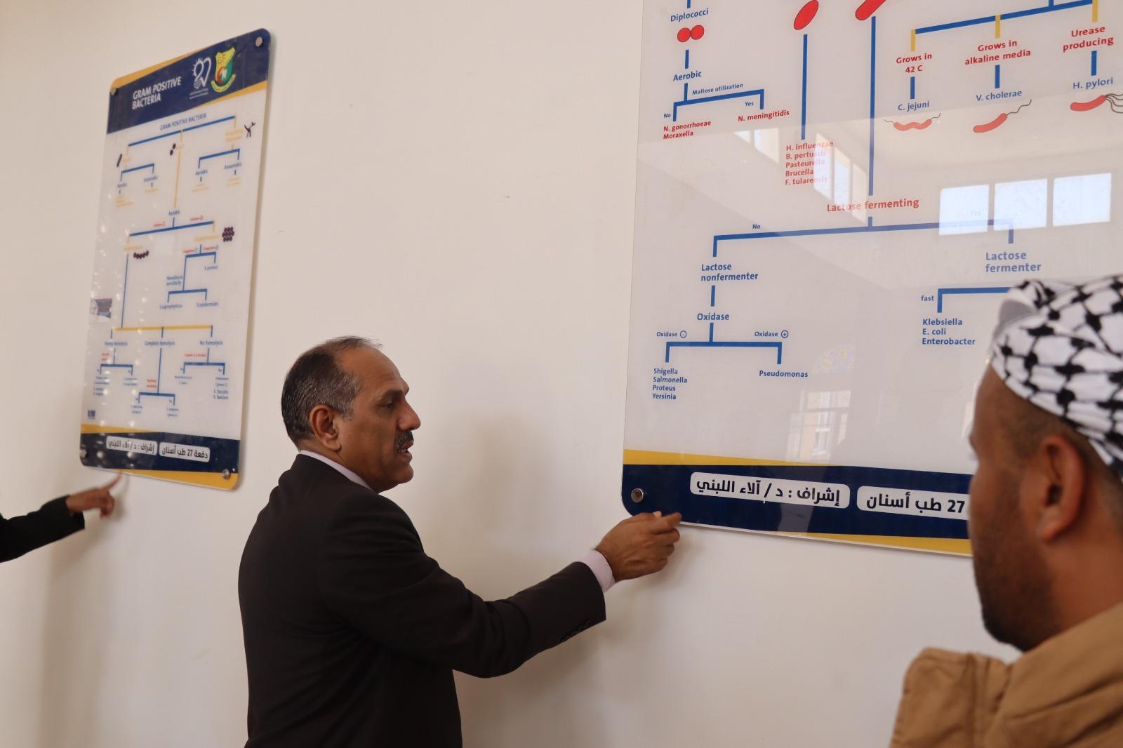During the visit, Dean of the Faculty, Dr. Rami Abdulrahman Ishaq, and Faculty Secretary, Mr. Yahya Al-Shareef, provided a comprehensive overview of the faculty’s performance. The briefing included updates on key scientific labs including computer labs, anatomy, gypsum modeling, microbiology, and the advisory clinic—which is in the final stages of preparation—alongside postgraduate research lab enhancements and the additional clinics that are part of the faculty’s expansion plans.