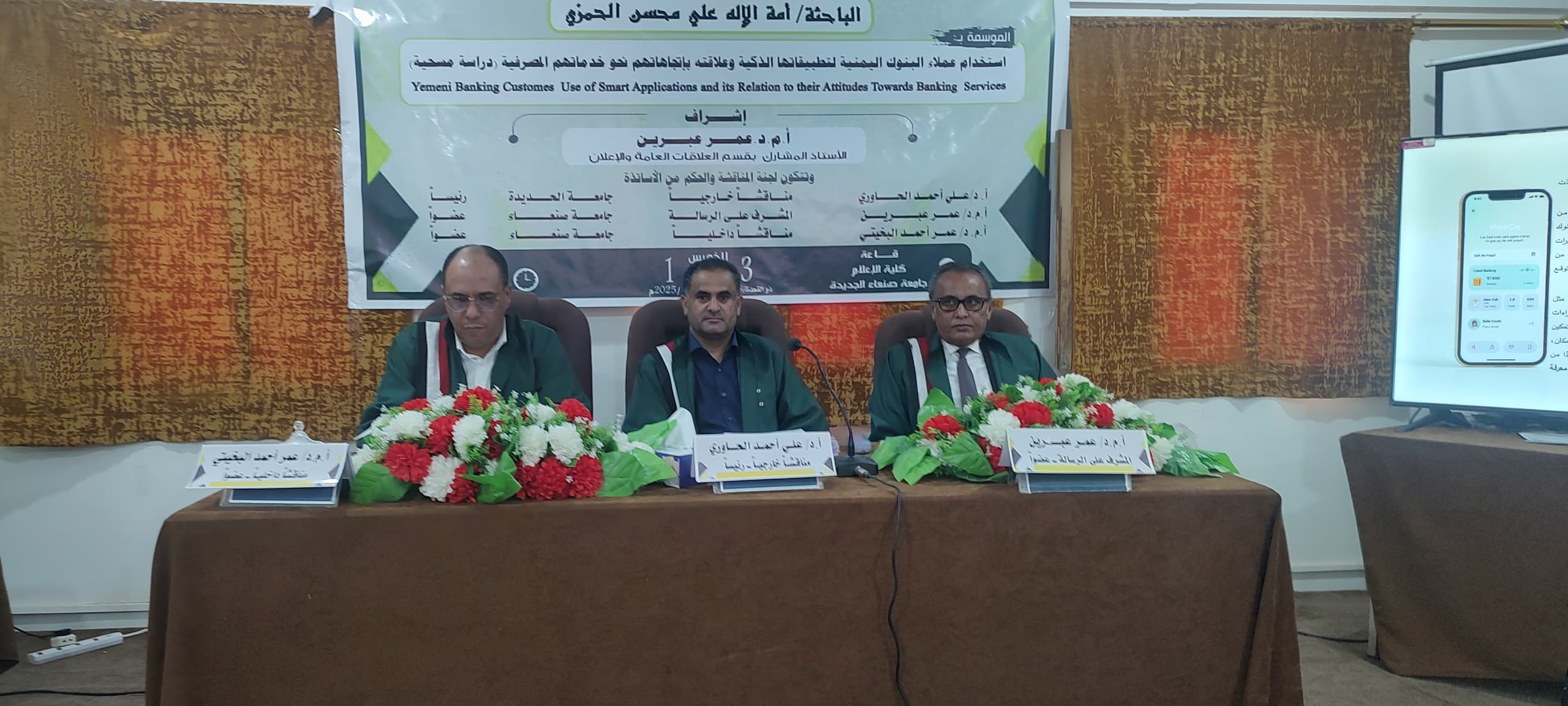 The title of her thesis was “The Use of Yemeni Banks Customers of Their Smart Applications and Its Relationship to Their Choice of their Banking Services.”