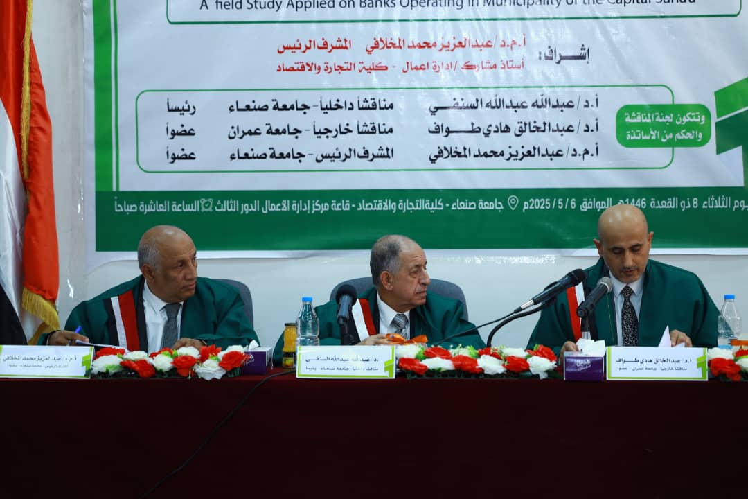 Ms. Safaa Ahmed Mohammed Abbas Fadhel was awarded a Master’s degree with an overall grade of (Excellent) and an average of 95% in Business Administration for her thesis titled “The Role of Strategic Agility in Crisis Management: A Field Study on Banks Operating in the Capital Secretariat (Sana’a).”, which was submitted to Department of Business Administration, Faculty of Commerce and Economics – Sana’a University. The Viva-Voce Committee, which was formed based on a resolution issued by the Post-Graduate Studies and Scientific Research Council, consisted of the following: