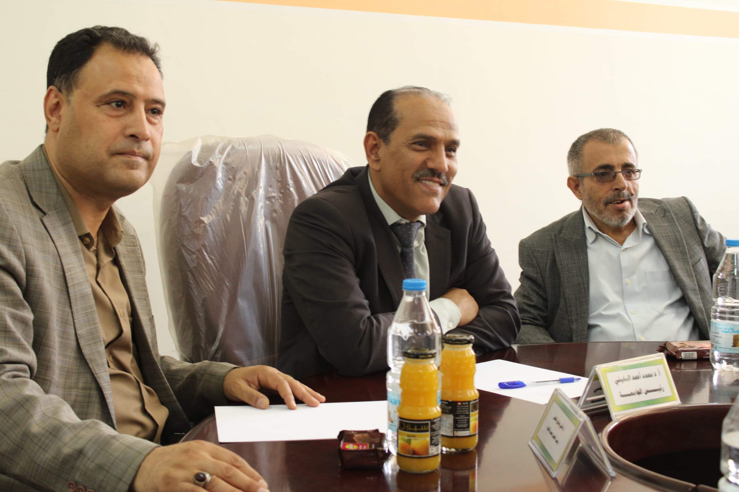 The meeting was attended by Dr. Ahmed Al-Shalabi, Dean of the Faculty of Computer Science, and Mr. Osama Al-Bukhaiti, Director of the Office of the University President.