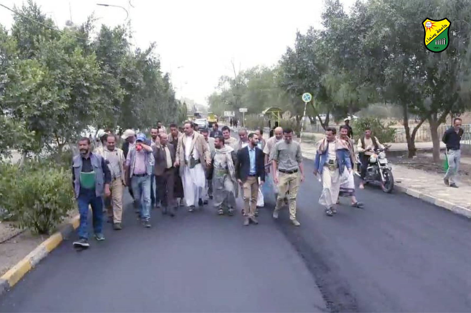The Mayor of the Capital, Dr. Hamoud Obad, and the Rector of Sana’a University, Prof. Mohammed Al-Bukhaiti, inspected today the progress of the asphalting work on the main road of Sana’a University campus. The project, which costs 103 million Yemeni Riyals, is jointly funded by Sana’a University and the Capital Secretariat through the General Administration of Community Initiatives.