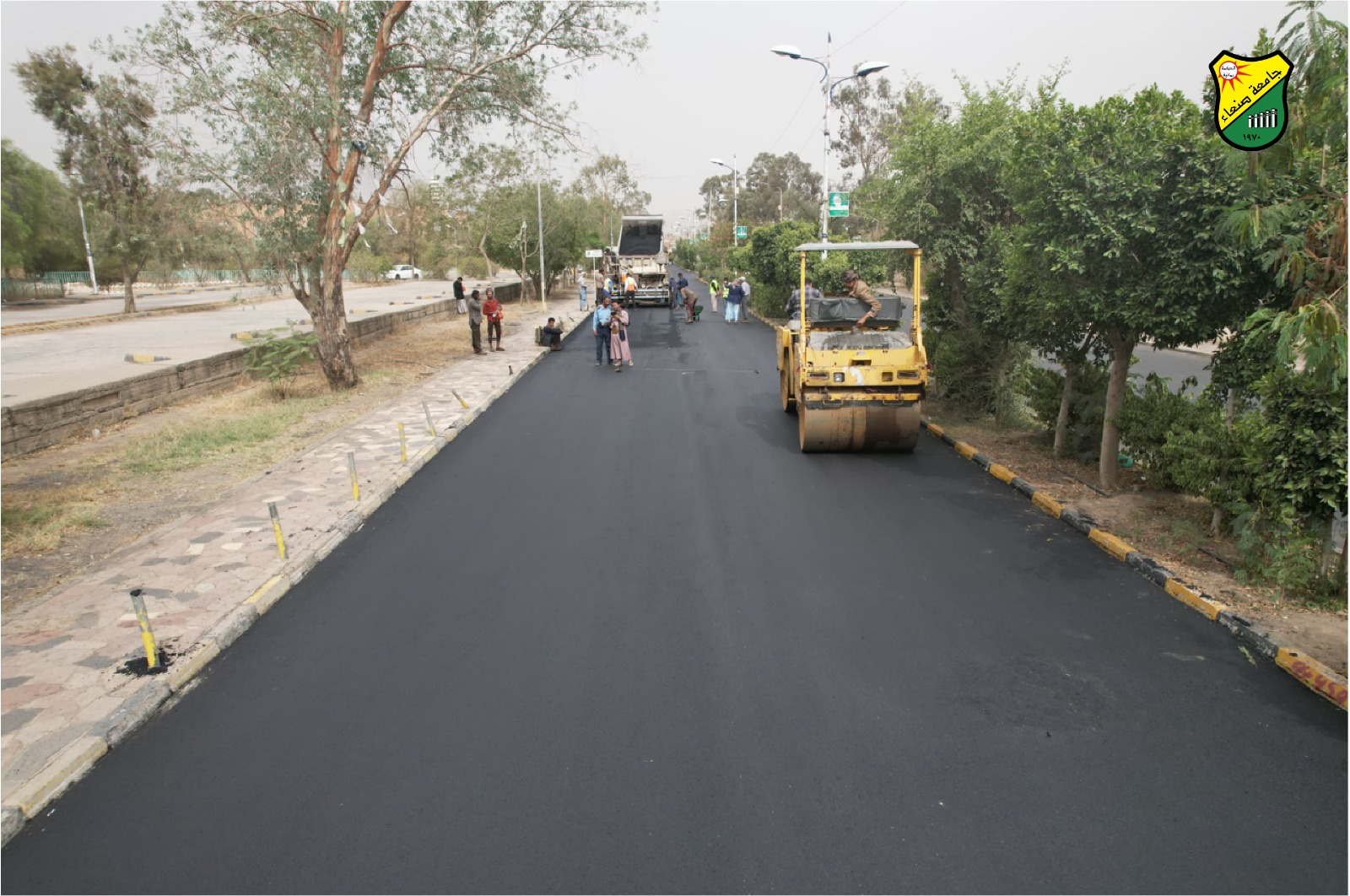 They explained that the first phase includes compacting and asphalting the damaged parts of the road and adding a layer of asphalt to the entire main road to improve the university’s infrastructure and facilitate traffic flow. They noted that an asphalt layer of 1,800 meters was laid today on the northern side of the road, following the paving of the other “southern” side last week.