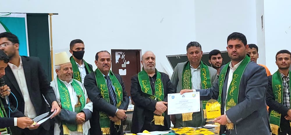 Prof. Mohammed Ahmed Al-Bukhaiti, Rector of Sana’a University, honored today the top-ranking students of the Faculty of Sharia and Law in a ceremony organized by the faculty on the occasion of the Prophet Mohammed’s Birthday and to welcome newly admitted students.