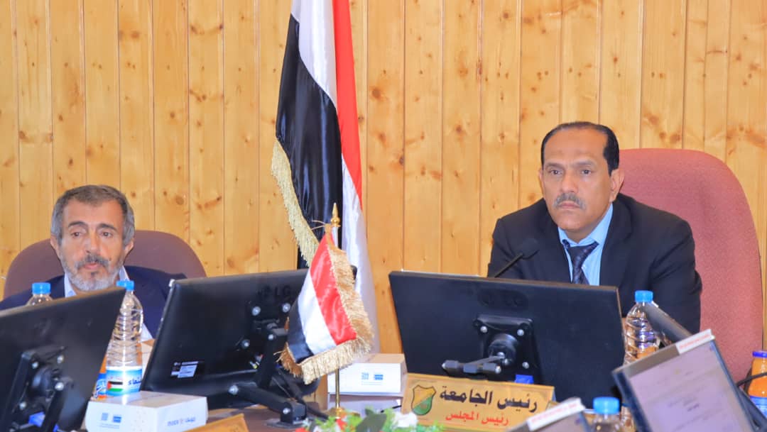 The Council of Sana’a University held its fourth regular meeting for the academic year 1447 Hijri / 2025-2026 today, chaired by the Rector of the University, Prof. Mohammed Ahmed Al-Bukhaiti, and attended by the university’s vice rectors, their assistants, and faculty deans.