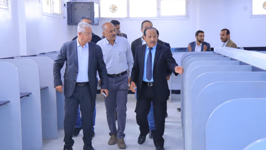 Sana’a University Rector, Prof. Mohammed Al-Bukhaiti, and the CEO of Yemen Mobile, Eng. Amer Mohammed Hazza, today visited the Sana’a University Electromic Testing Center (ETC) to review its performance during student exams and to ensure its technical and organizational readiness.