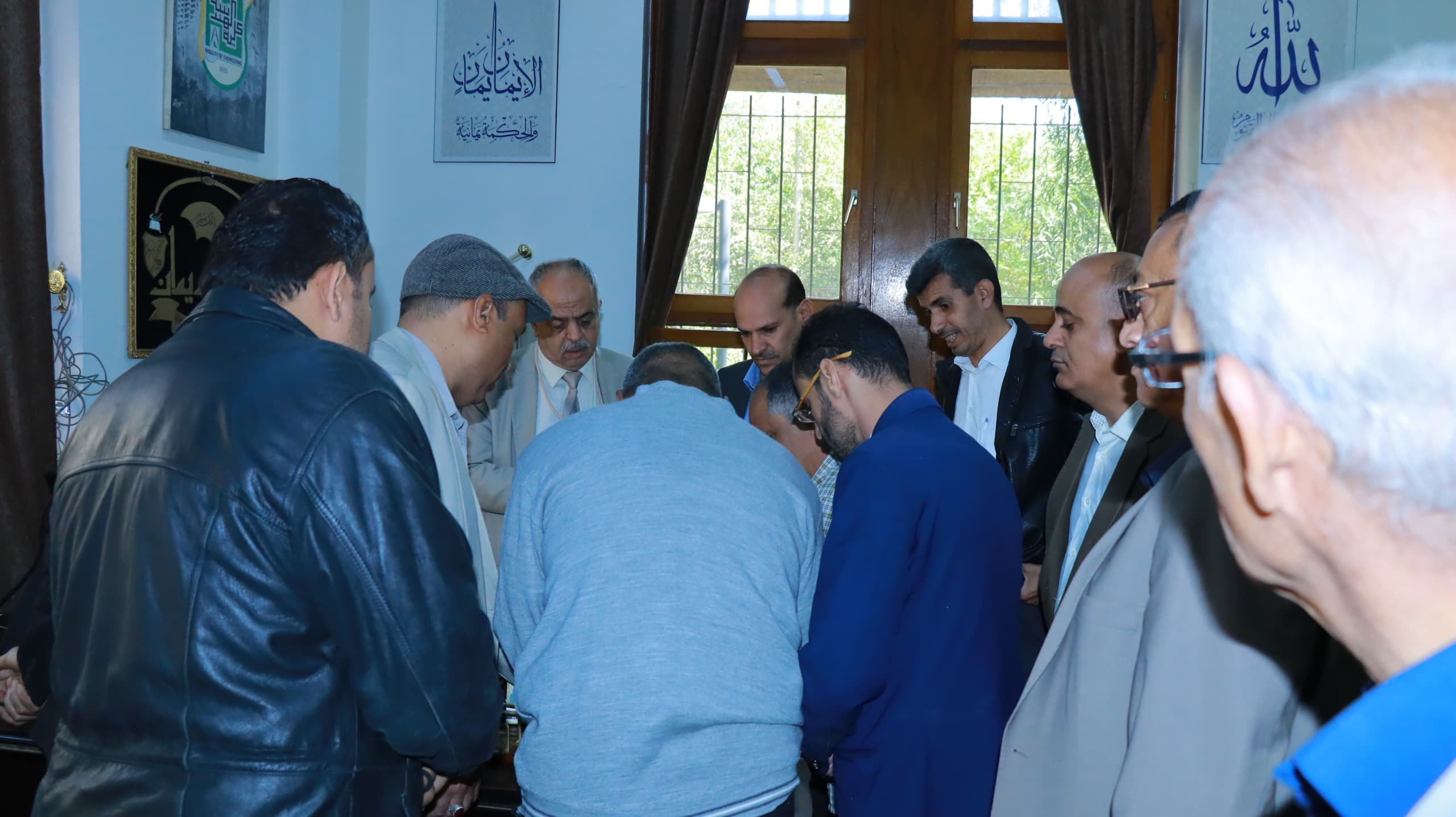 The Faculty of Engineering at Sana’a University held an official handover ceremony between the former Dean, Prof. Abdullah Al-Maswari, and the new Dean, Prof. Adel Rawei’, attended by faculty members, administrative staff, and members of the committee overseeing the handover process.