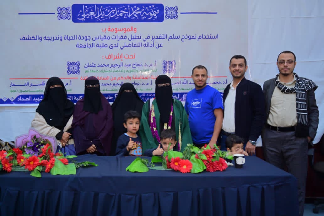 Ms. Maimouna Mohammed Ahmed Zaid Al-Ghaili was awarded a PhD degree in Educational Psychology for her dissertation titled: Using Rating Scale Model in Analyzing and Scaling Items of the Quality of Life Measure and Detecting Differential Item Functioning among University Students, which was submitted to the Department of Educational Psychology, Faculty of Education – Sana’a University. The dissertation defense was held on Thursday, November 11, 2025.