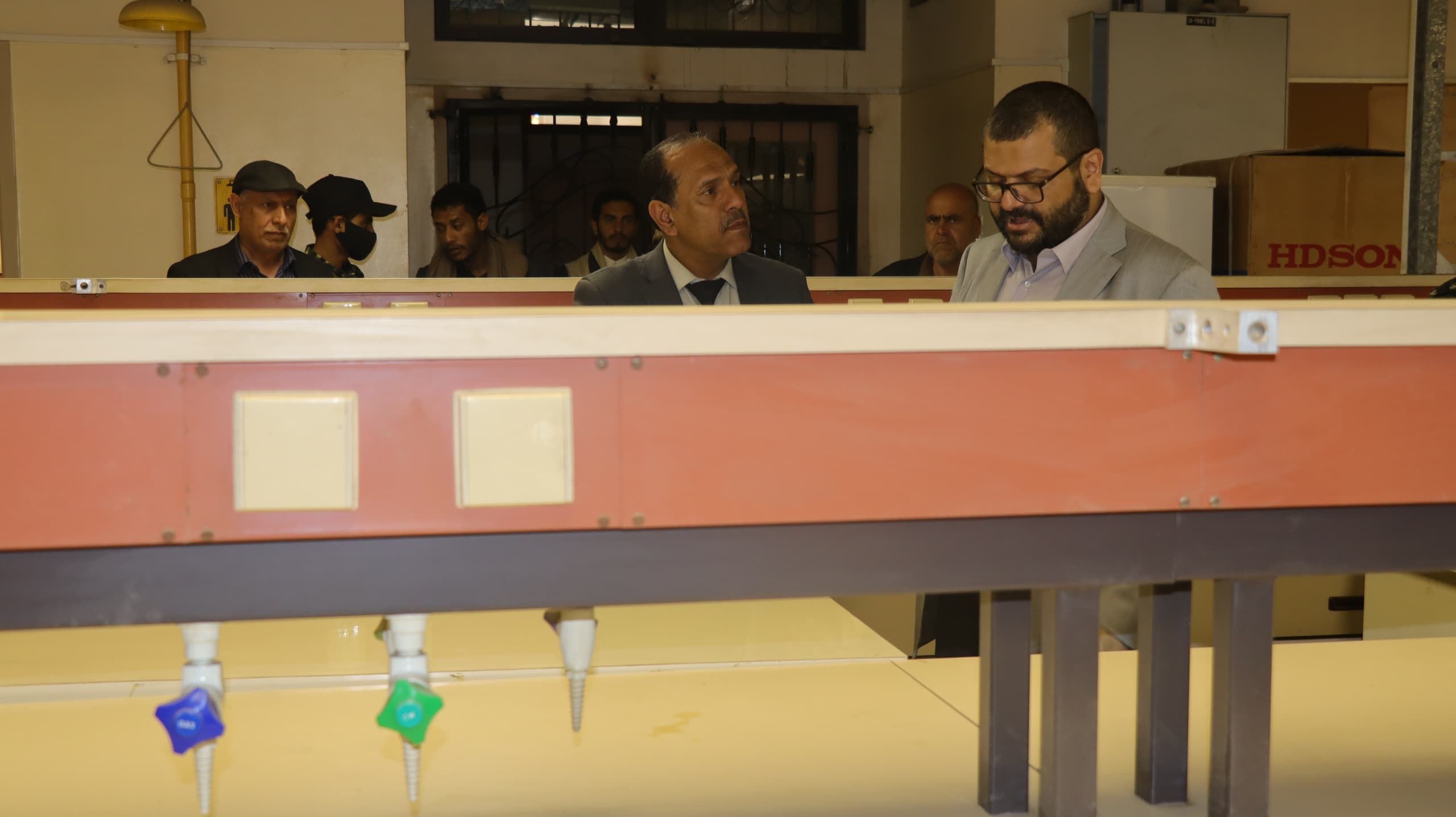 They were welcomed by Dr. Adel Al-Washali, Dean of the Faculty, and Dr. Mansour Al-Dhobhani, Director of the Central Laboratories Center, along with a number of administrative and technical staff. During the visit, the University Rector and the Minister reviewed the laboratories’ technical preparedness, the ongoing completion of laboratory outfitting, and the mechanisms for operating modern laboratory equipment in accordance with approved technical standards, in a way that enhances scientific research, supports the educational process, and meets the needs of university faculties and relevant external entities.