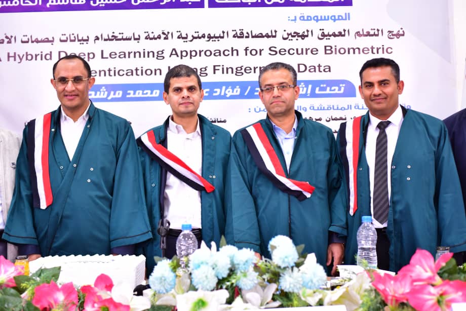 Mr. Abdulrahman Hussein Hashem Al-Hames was awarded a Master’s Degree in Computer Science for his thesis titled: A Hybrid Deep Learning Approach for Secure Biometric Authentication Using Fingerprint Data, which was submitted to the Department of Computer Science, Faculty of Computer and Information Technology – Sana’a University. The MA defense was held on Monday, Sha’ban 28, 1447 Hijri, corresponding to February 16, 2026.