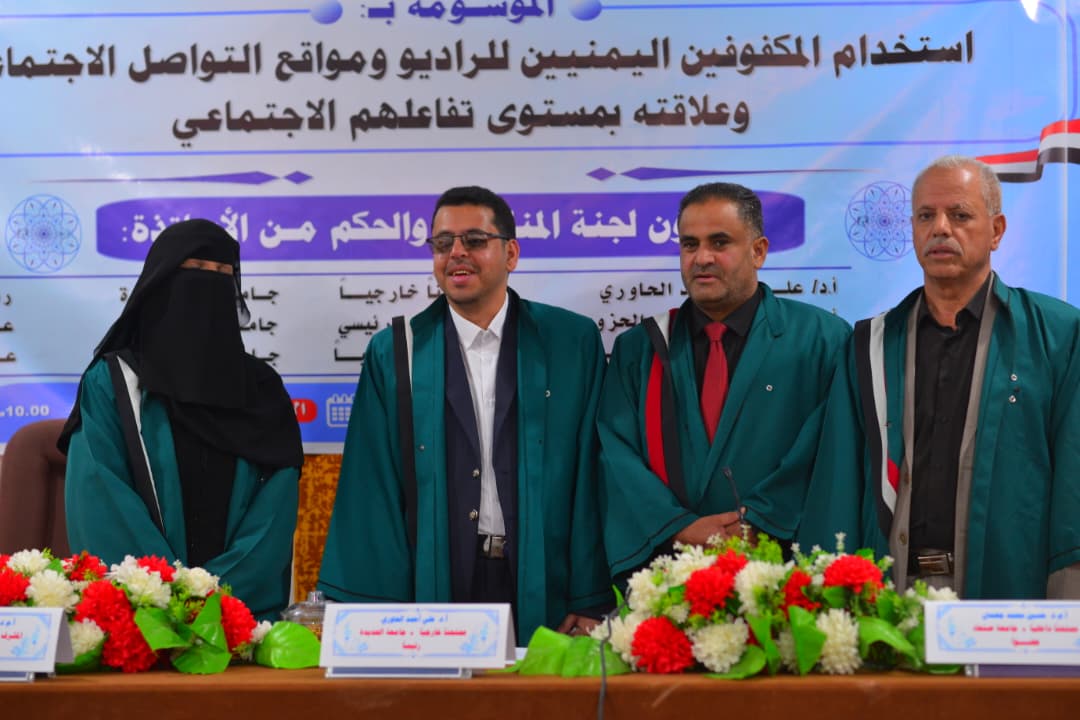 with a grade of (Excellent) and an average of (95%) for his thesis titled ” The Use of Radio and Social Media by Yemeni Blind Individuals and its Relationship to Their Level of Social Interaction,” which was submitted to Department of Radio and Television, Faculty of Mass Communication – Sana’a University. The defense was held on Monday, February 16, 2026.