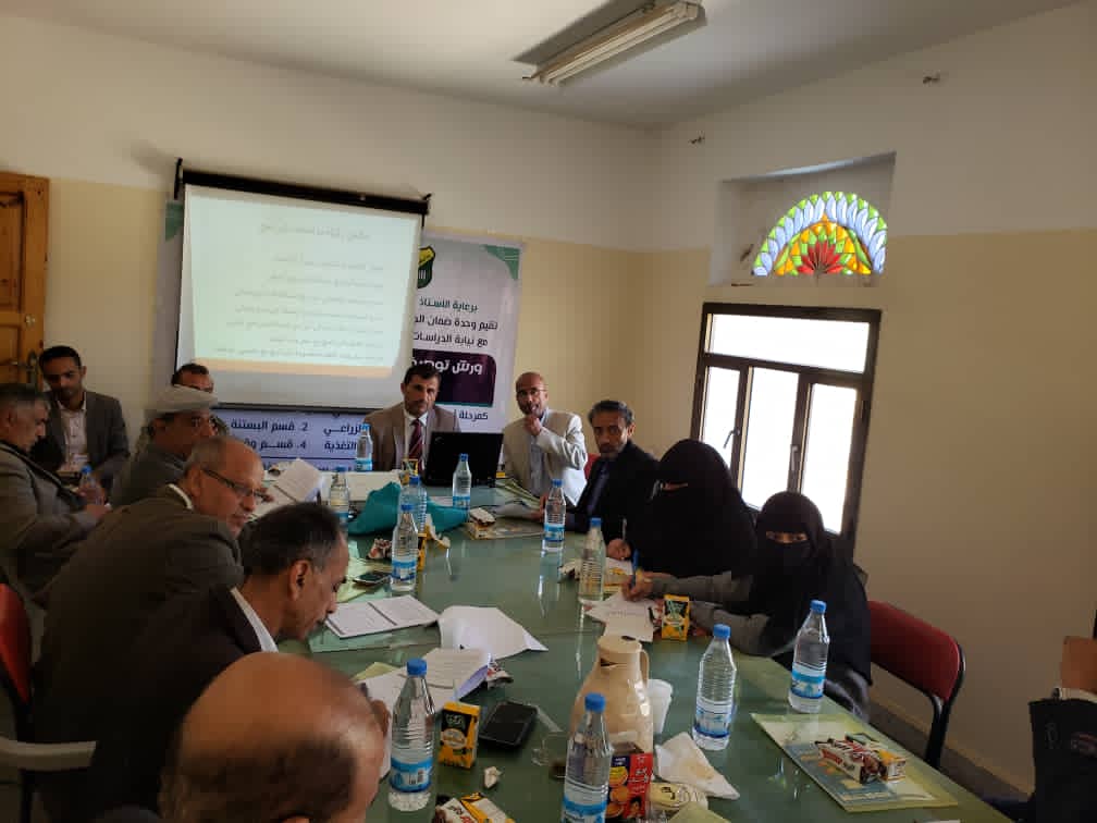 نفذت كلية الزراعة والأغذية والبيئة ممثلة بوحدة ضمان الجودة والتطوير الاكاديمية بالكلية يوم الاربعاء8 ربيع الثاني 1444ه الموافق 2/11/20222م، ورشة عمل “لتوصيف برامج الدراسات العليا-ماجستير في قسم “وقاية النبات” ببرامجه المختلفة”. تطرقت الورشة الى متطلبات توصيف وثيقة برنامج دراسات، وآلية المتبعة في التوصيف، والتعرف على خطوات وأدوات توصيف البرنامج. القى المحاضرات في الورشة مندوبي مركز التطوير الأكاديمي وضمان جودة التعليم بالجامعة د/ عبد الغني النور ود/ منصر الصباري. كما أوضح الاخوة المحاضرون خلال الورشة الى طريقة اجراء توصيف الوثيقة من حيث تقسيم وثيقة مواصفات البرنامج وخطوات وإجراءات عملية توصيف البرنامج الأكاديمي، وكيفية جمع المعلومات الضرورية لتوصيف البرنامج من خلال مسح البرامج المناظرة وتحديد رسالة البرنامج وصياغة مواصفات الخريج، وتحديد أهداف البرنامج ومخرجات التعلم المقصودة ومواءمة مكونات الوثيقة مع اهداف ورسالة الجامعة والكلية والقسم وكيفية عمل المواءمة مع البرامج المماثلة. هذا وقد تخلل الورشة مداخلات من الأساتذة الحاضرين أعضاء هيئة التدريس بالقسم المشاركين في الورشة ونقاش وتم طرح العديد من الآراء من خلال ذلك والذي أدى الى اثراء الموضوع بشكل جيد، وأشار الجميع الى أهمية تضافر الجهود وتعاون الجميع لإنجاز وثيقة البرنامج واستكمال توصيف مقرراته وفق الأليات والإجراءات المتبعة في ذلك وبحسب قالب مجلس الاعتماد الأكاديمي وضمان جودة التعليم الجامعي والمرجعيات من البرامج المناظرة وعمل المواءمات المطلوبة وفقا لقالب التوصيف. حضر افتتاح الورشة الأخ / عميد الكلية أ.م.د./عادل الوشلي، ونائب العميد لشؤون البيئة وخدمة المجتمع أ.د./محمد راح سعيد، ونائب العميد لشؤون ضمان الجودة أ.د/عبد المجيد بجاش عبد الله ورئيس قسم وقاية النبات أ.م.د./ محمد سعيد السامعي وا.د./حسن الدبعي/ رئيس قسم البستنة وتقاناتها والاخوة الأساتذة أعضاء هيئة التدريس بالقسم، ومنتسبي الدراسات العليا والمهتمين، ومندوب مركز التطوير الأكاديمي الاستاذ/ ناصر القباطي. وتم الاتفاق في نهاية الورشة على ان يتم تشكيل فريق متخصص ومنسق لكل برنامج (شعبة) في القسم يقوم بإعداد وصياغة مسودة الوثيقة بكل مكوناتها ومن ثم عرضها للمناقشة والاقرار في ورش قادمة بإذن الله. أقيمت الورشة برعاية كريمة من الأستاذ الدكتور/ القاسم محمد عباس رئيس الجامعة وبإشراف مباشر من أ.د/ هدى العماد عميد مركز التطوير الأكاديمي وضمان الجودة وبمتابعة من عميد كلية الزراعة والأغذية-جامعة صنعاء أ.م.د./عادل الوشلي ونائبه لشؤون ضمان الجودة.