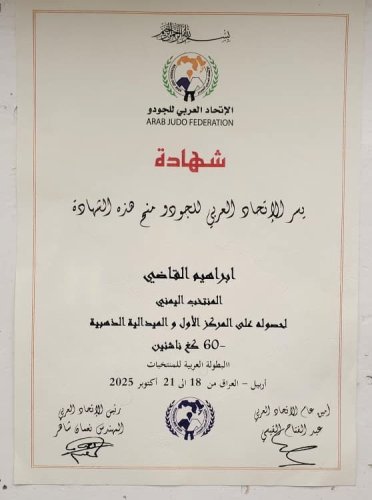 وتمكّن الطالب إبراهيم القاضي من إحراز المركز الأول والميدالية الذهبية في البطولة العربية للمنتخبات التي أُقيمت في العراق، إلى جانب حصوله على المركز الثاني والميدالية الفضية في بطولة غرب آسيا للمنتخبات التي استضافتها الأردن.