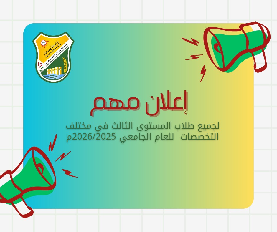 تعلن عمادة الكلية لجميع طلاب المستوى الثالث في مختلف التخصصات أن برنامج التدريب الصيفي سيبدأ بمشيئة الله يوم: