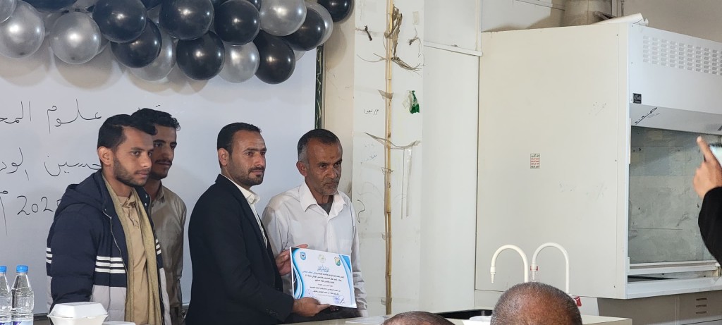 The Dean of the College, Dr. Adel Muhammad Al-Washli, the Vice Dean for Student Affairs, Dr. Amer Ali Mahdi Amer, and the Youth Pioneer, Dr. Dhafer Huwaida, were also honored for their efforts in serving the students.