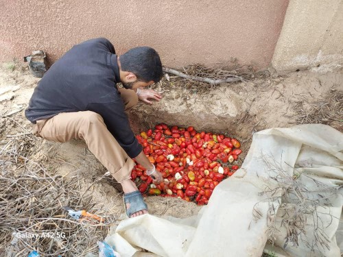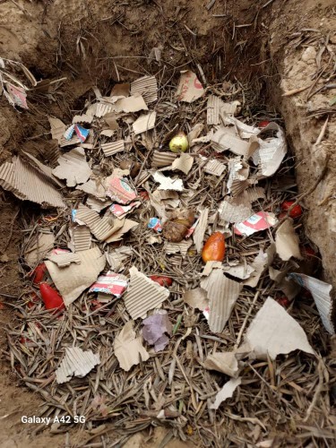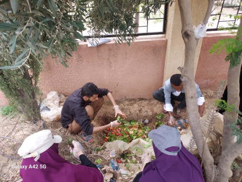 The project involved digging a special pit in the soil and preparing it to receive organic waste. Vegetable scraps, dry tree leaves, and cardboard waste were shredded and collected. This activity aims to promote the concept of recycling agricultural waste and converting it into a rich organic material that helps increase soil fertility and reduce reliance on chemical fertilizers.