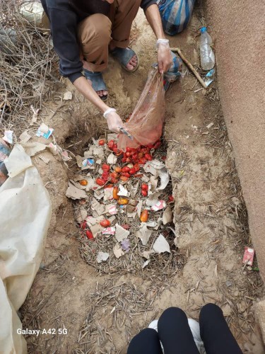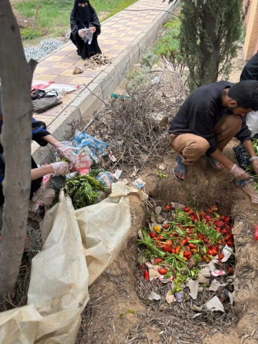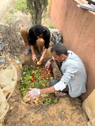 The project involved digging a special pit in the soil and preparing it to receive organic waste. Vegetable scraps, dry tree leaves, and cardboard waste were shredded and collected. This activity aims to promote the concept of recycling agricultural waste and converting it into a rich organic material that helps increase soil fertility and reduce reliance on chemical fertilizers.