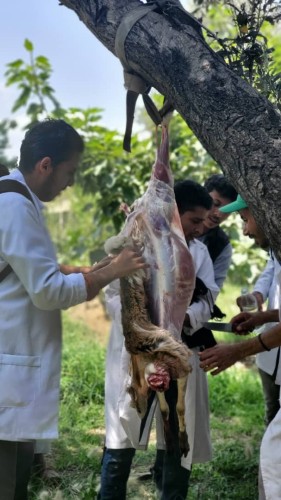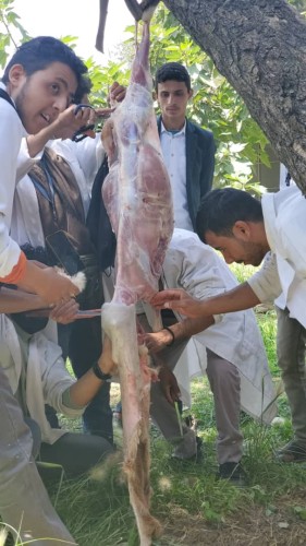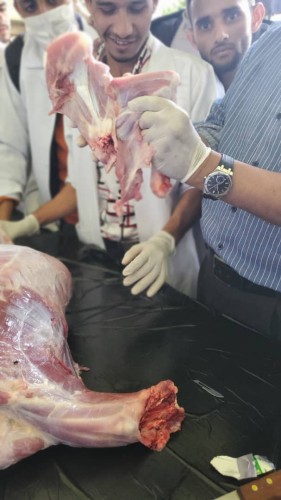 The activity was supervised by Dr. Khalid Al-Maqtari, with the participation of teaching assistant Amani Hassan Muqbel in the field supervision. Students were trained on scientific dissection methods in accordance with academic and ethical standards to achieve the course objectives and enhance their practical competence in the field of animal production.