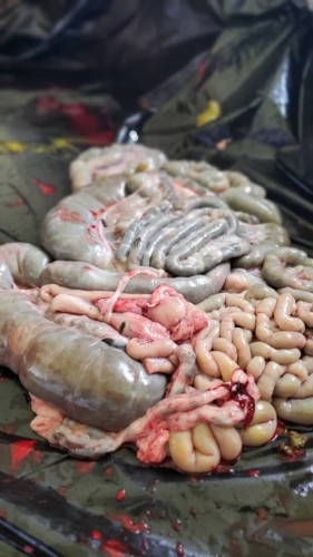 The activity sought to solidify students’ scientific and practical understanding through direct practical dissection of sheep. It included identifying external anatomical features and a detailed study of the vital body systems, including: the digestive system with its ruminant components, the respiratory system and its mechanism, the circulatory system through the heart and blood vessels, the urinary system and its excretory functions, the male and female reproductive systems and their role in reproduction, in addition to the central and peripheral nervous systems and their regulatory functions. The activity also included anatomical comparisons between sheep and other types of farm animals to enhance comparative understanding and develop practical skills.