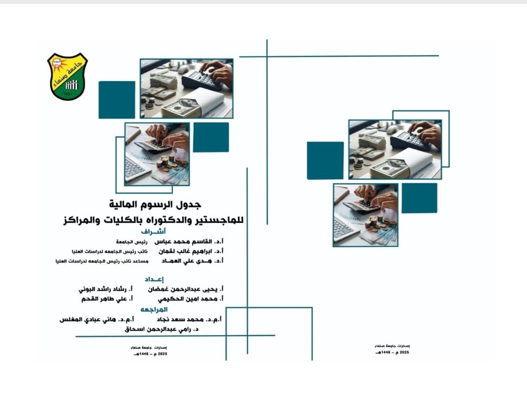 جدول الرسوم المالية للماجستير والدكتوراة بالكليات والمراكز Posted by جامعة صنعاء كلية الآداب والعلوم الإنسانية التصنيفات الأخبار Date أبريل 11, 2025 جدول الرسوم المالية للماجستير والدكتوراة بالكليات والمراكز لتحميل جدول الرسوم المالية للماجستير والدكتوراة بالكليات والمراكز اضغط هنا جامعة صنعاء كلية الآداب والعلوم الإنسانية المقال السابق آلية النشر في مجلات جامعة صنعاء أبريل 11, 2025 المقال التالي مخطط لضوابط وشروط تحضير درجتي الماجستير و الدكتوراه أبريل 11, 2025 You may also like الدكتوراه للباحثة فائزة أحمد حسين الوادعي من قسم علم النفس – كلية الآداب والعلوم الإنسانية 31 مارس, 2026 الدكتوراه للباحث حافظ على محمد اليعري من قسم الجغرافيا والجيوانفورماتكس بكلية الآداب والعلوم الإنسانية 31 مارس, 2026 كلية الآداب والعلوم الإنسانية تعلن نتائج التظلمات للعام الجامعي 1447هـ (2025–2026م) 31 مارس, 2026