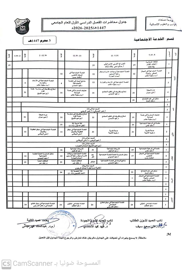 الجدول الدراسي النهائي للفصل الاول من العام الجامعي 2025/ 2026 م كلية الآداب والعلوم الانسانية Posted by جامعة صنعاء كلية الآداب والعلوم الإنسانية التصنيفات الأخبار Date يوليو 14, 2025 جامعة صنعاء كلية الآداب والعلوم الإنسانية المقال السابق إعــــــلان عن فتح باب التنسيق والقبول بنظام التجسير يوليو 14, 2025 المقال التالي كلية الآداب تهنئ خريجي الثانوية و تعلن استمرار التسجيل حتى 30 يوليو. يوليو 14, 2025 You may also like الدكتوراه للباحثة فائزة أحمد حسين الوادعي من قسم علم النفس – كلية الآداب والعلوم الإنسانية 31 مارس, 2026 الدكتوراه للباحث حافظ على محمد اليعري من قسم الجغرافيا والجيوانفورماتكس بكلية الآداب والعلوم الإنسانية 31 مارس, 2026 كلية الآداب والعلوم الإنسانية تعلن نتائج التظلمات للعام الجامعي 1447هـ (2025–2026م) 31 مارس, 2026