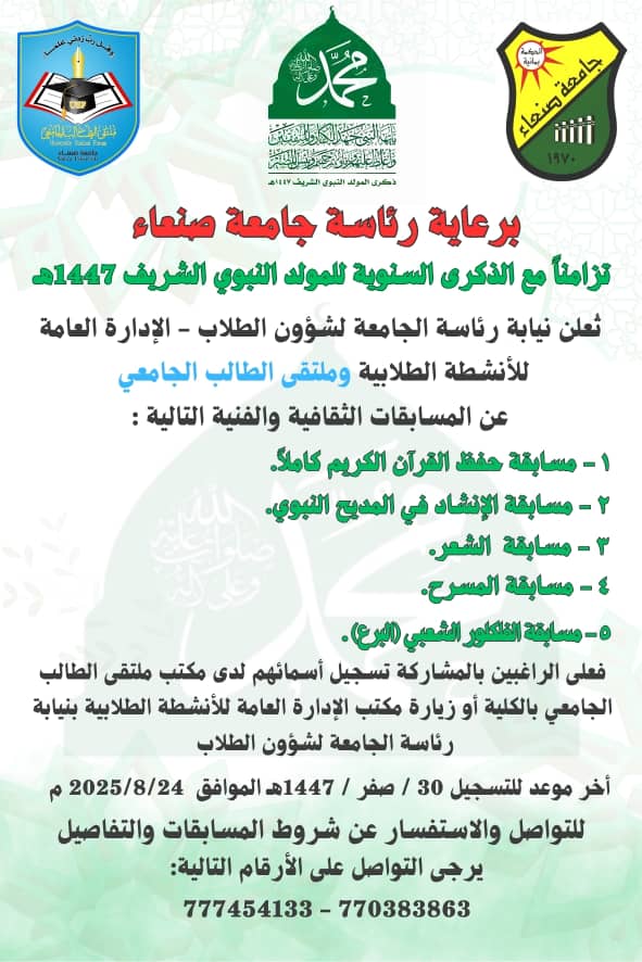 المسابقات الثقافية والفنية بجامعة صنعاء
