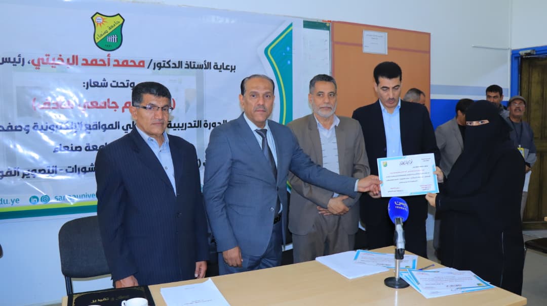 كلية الآداب تحتفي بمنح مسؤولة موقعها شهادة مشاركة في دورة تدريبية بجامعة صنعاء.