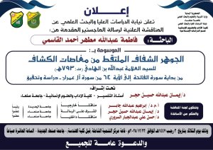 – قسم الدارسات الإسلامية – بكلية الآداب والعلوم الإنسانية عن رسالتها الجوهر الشفاف الملتقط من مغاصات الكشاف