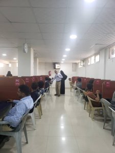 وجرت أعمال الاختبارات بحضور نائب عميد الكلية لشؤون الطلاب الأستاذ الدكتور علي سعيد ورئيس لجنة الكنترول الدكتور محمد العطاب ومسجل الكلية الأستاذة شهرزاد شبرين، ومديرة نظم المعلومات الأستاذة سارة الأغبري، ورئيس لجنة اختبارات المكفوفين الأستاذ علي حمود مقدام.