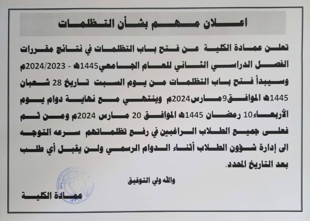 تم انعقاد مجلس كلية الآداب والعلوم الإنسانية في جامعة صنعاء برئاسة عميد الكلية الدكتور عبدالملك محمد عيسى اليوم بتاريخ 12 رجب 1445 ه -23 يناير 2024 م وإذ يتابع المجلس ما يتعرض له اليمن من عدوان أمريكي-بريطاني ظالم على الشعب …