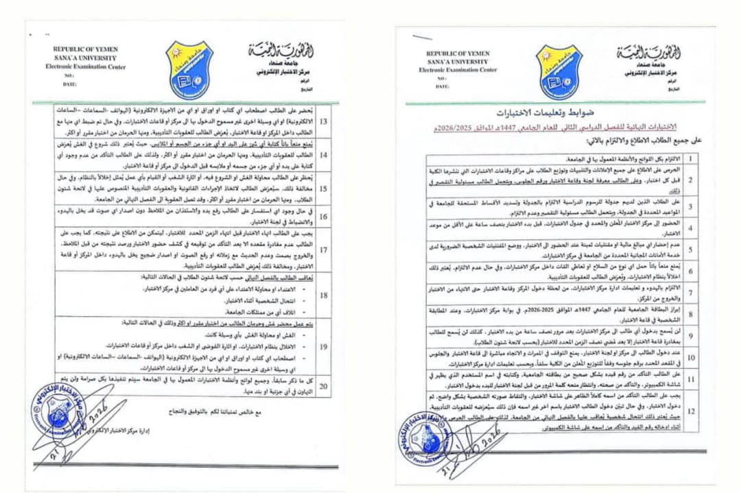 ضوابط و تعليمات الاختبارات للعام الجامعي1447هـ الموافق 2026/2025م