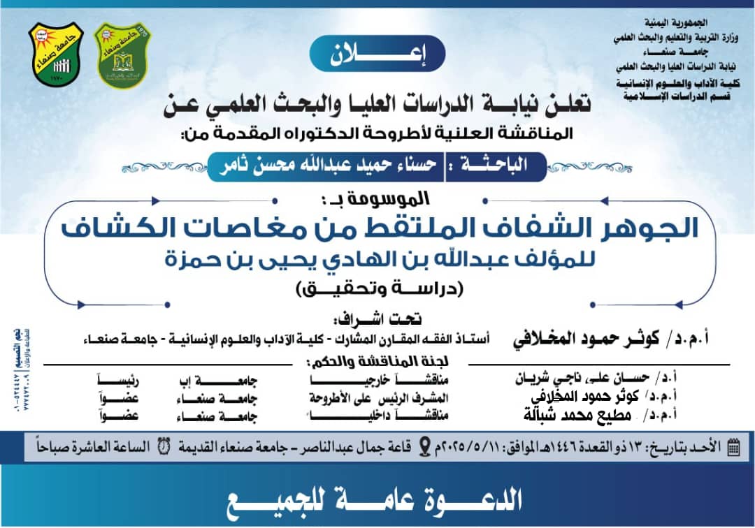 Vice Rector’s Office for Graduate Studies and Scientific Research cordially invites you to attend the public defense of the PhD. Dissertation entitled: