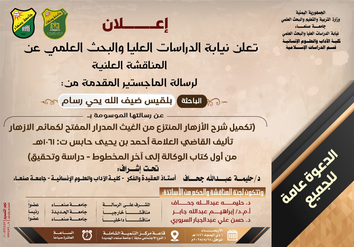 Professor of Creed and Thought, Faculty of Arts and Humanities, Sana’a University