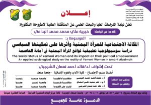 “Social Status of Yemeni Women and its Impact on their Political Empowerment: An Applied Sociological Study of the Reality of Yemeni Women in the Capital Secretariat (Sana’a)”