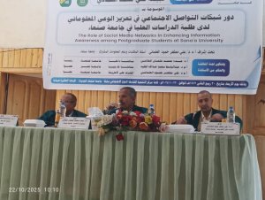 Ms. Nabiha Ali Mohammed Al-Hammadi was awarded a PhD degree for her dissertation titled, “The Role of Social Media Networks in Enhancing Information Awareness among Postgraduate Students at Sana’a University,” which was submitted to Department of Libraries and Information Science, Faculty of Arts and Humanities – Sana’a University. The PhD dissertation defense was held on Wednesday, October 22, 2025.