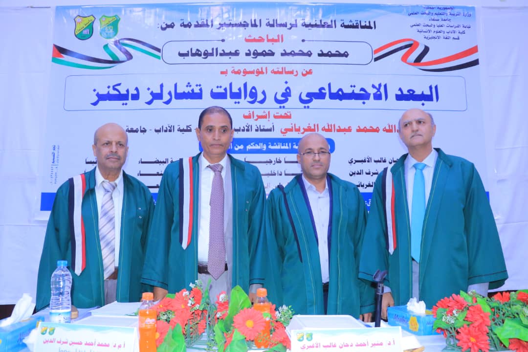 Mr. Mohammed Mohammed Hamoud Abdulwahab was awarded a Master’s Degree in English Literature with an average of (Excellent) and a grade of (92%) for his thesis titled: The Social Dimension in the Novels of Charles Dickens, which was submitted to …