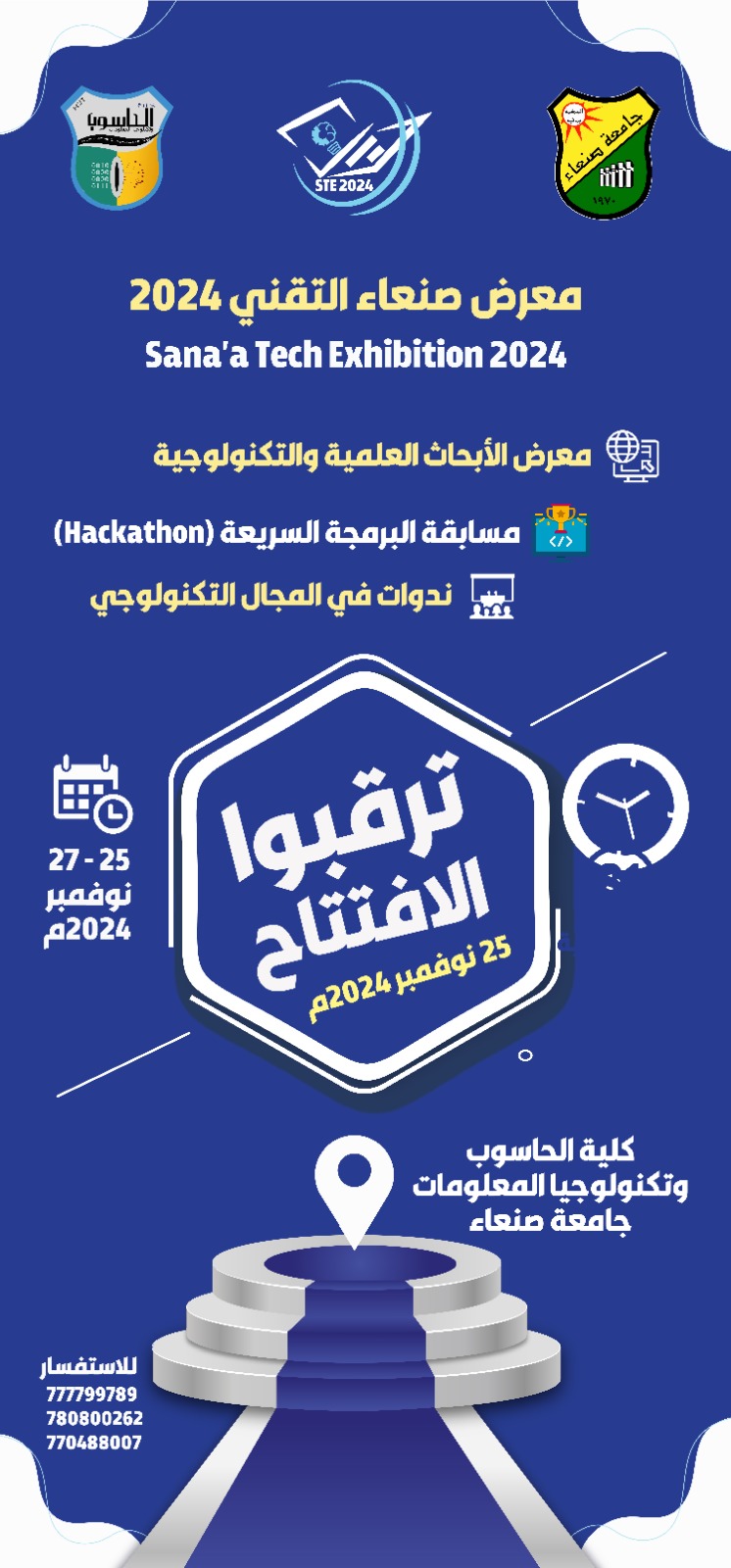 تعلن كلية الحاسوب وتكنولوجيا المعلومات بجامعة صنعاء عن بدء التسجيل للمشاركة في أنشطة ومسابقات معرض صنعاء للتكنولوجيا (Sana’a Tech Expo) …