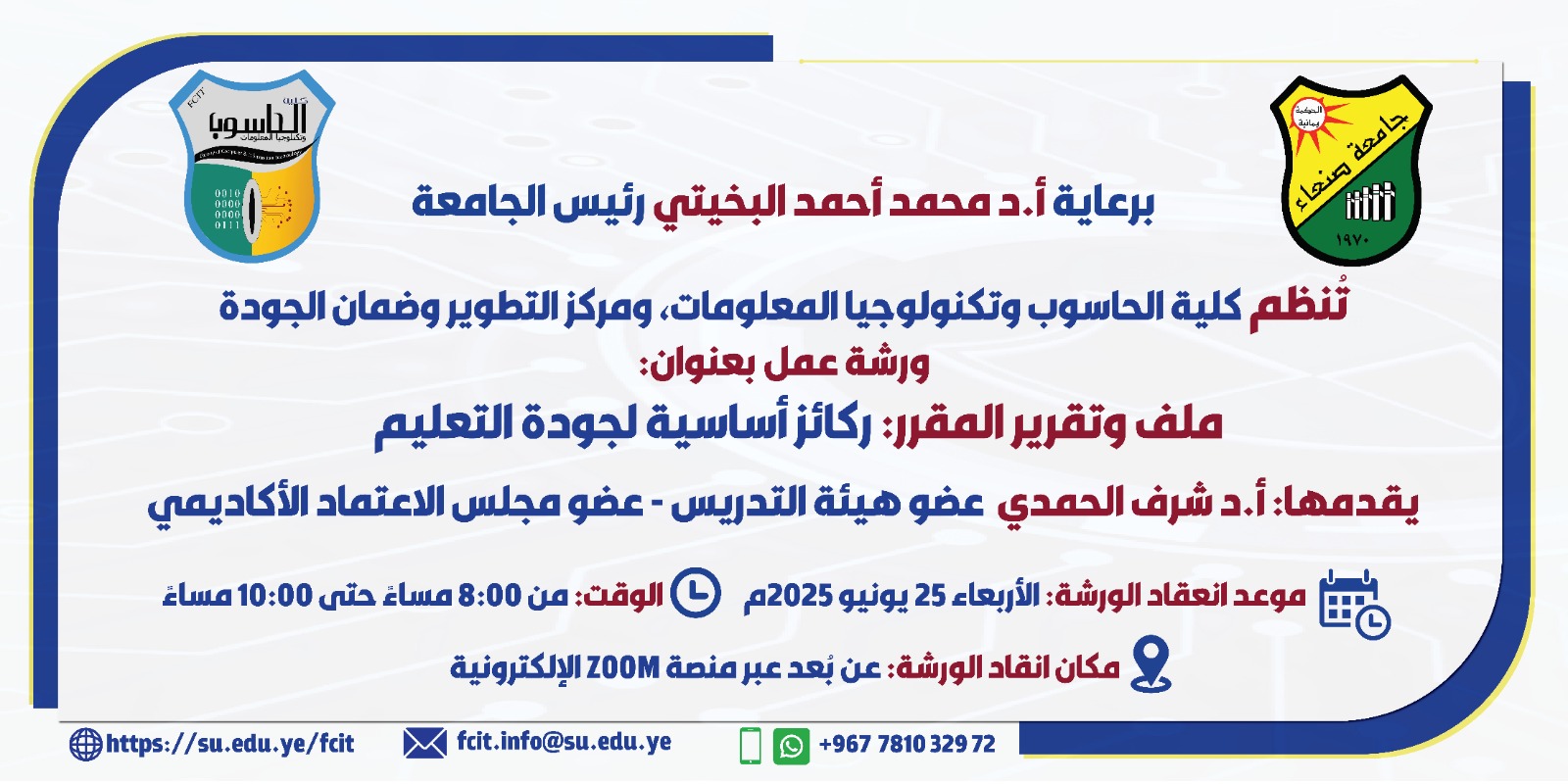 Under the auspices of Prof. Mohammed Al-Bukhaiti, President of Sana’a University, the Faculty of Computer and Information Technology, in cooperation …