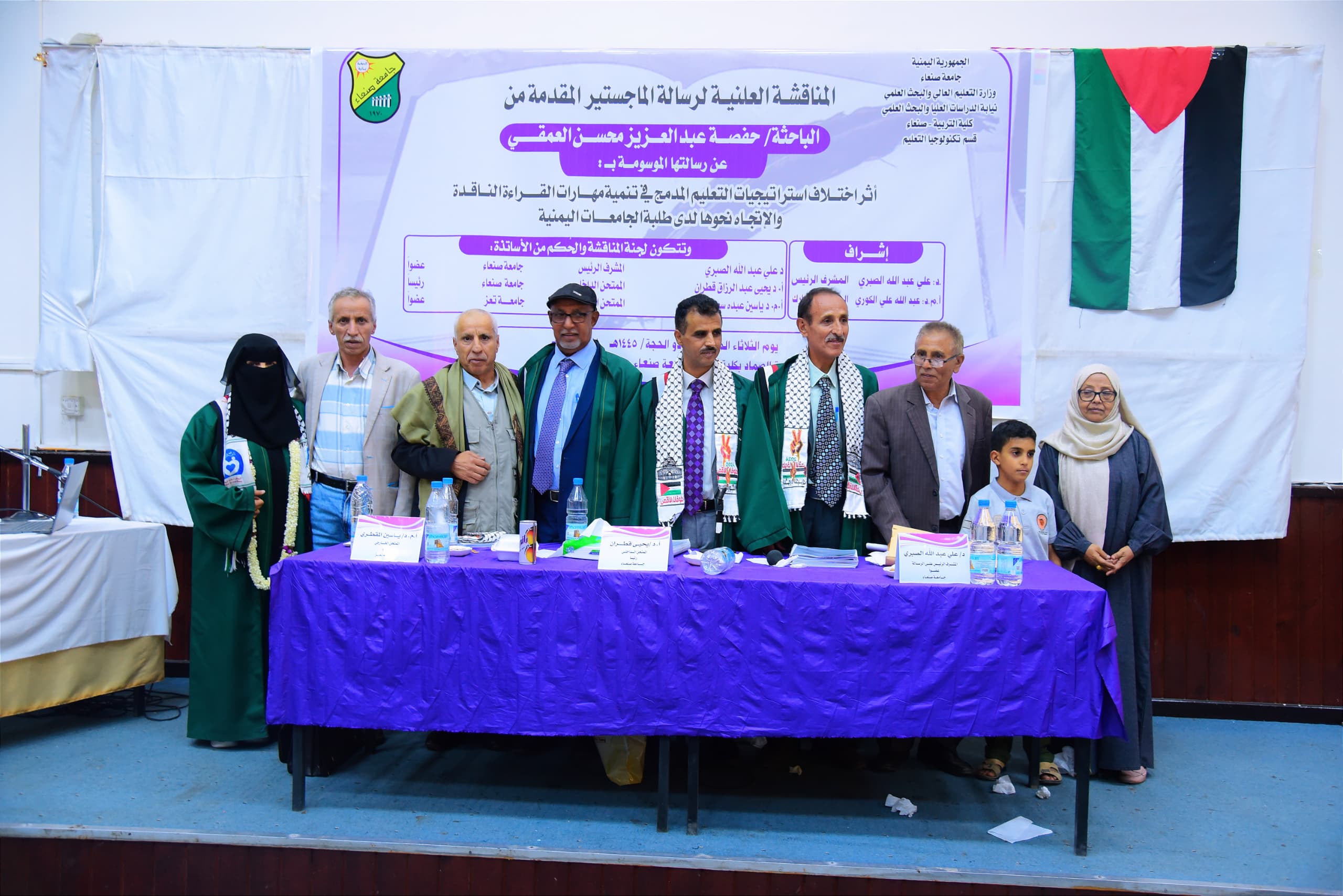 مناقشة رسالة الماجستير-تخصص: تكنولوجيا التعليم – المقدمة من الطالبة حفصة عبد العزيز العمقي بعنوان (إثر اختلاف استراتيجيات التعليم المدمج في تنمية مهارات القراءة الناقدة والاتجاه نحوها لدى طلبة الجامعات اليمنية)