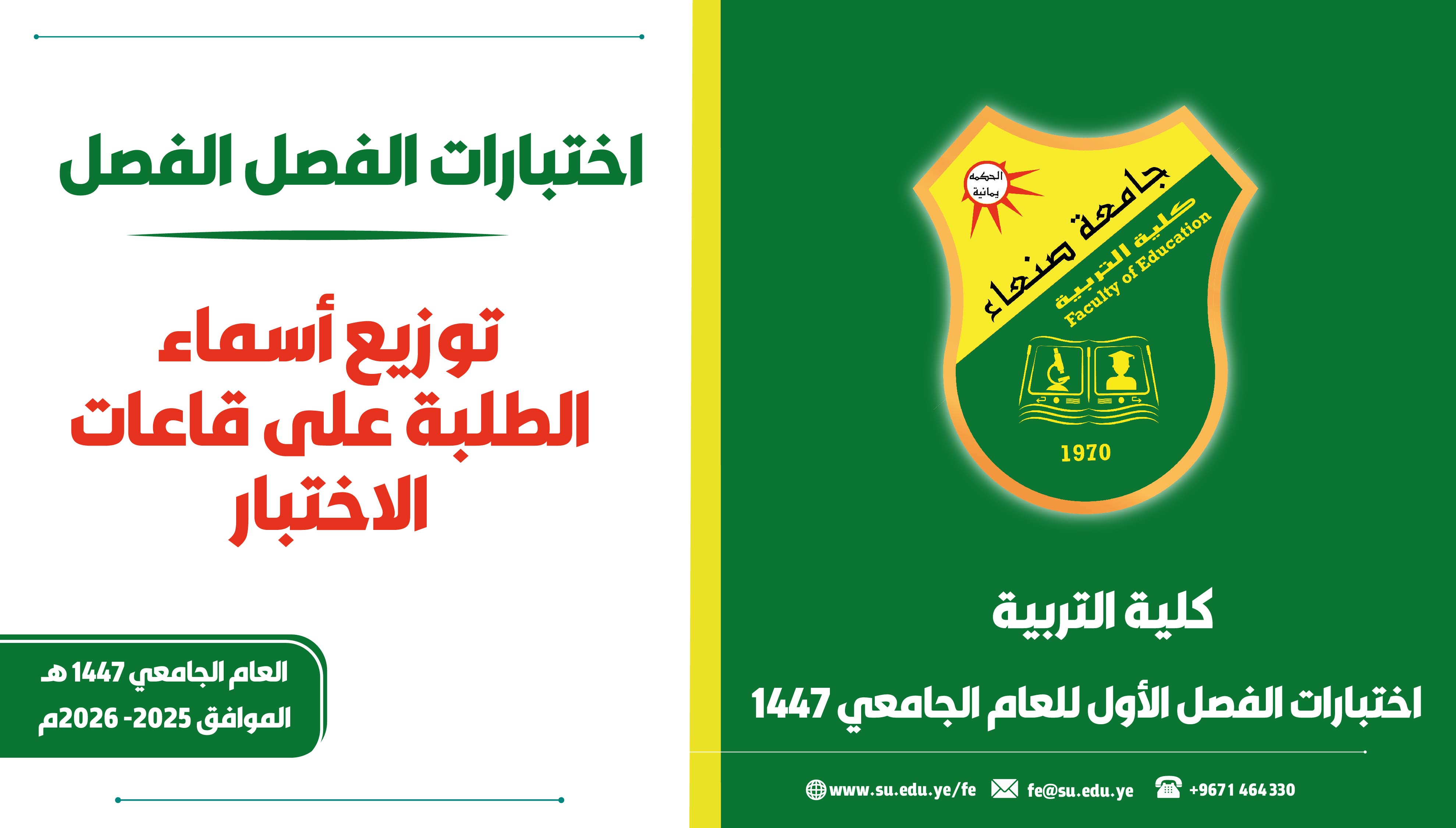 | 404 | 7 | 2402100490 | اسهام عبدالكريم مصلح محمد البعداني | اللغة الإنجليزية | الثاني | كتابة (3) | الثانية | 4/10/2025 | |||