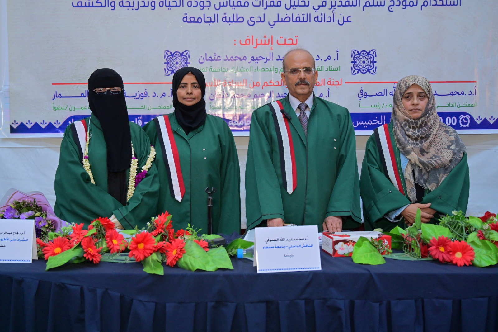 نالت الباحثة ميمونة محمد احمد زيد الغيلي ، درجة الدكتوراه من قسم علم النفس التربوي بكلية التربية – جامعة صنعاء – عن أطروحتها الموسومة بـ “استخدام نموذج سلم التقدير في تحليل فقرات مقياس جودة الحياة وتدريجه والكشف عن أدائه التفاضلي لدى طلبة الجامعة” يوم الخميس بتاريخ 20 جماد آخر 1447هـ الموافق 2025/12/11م.