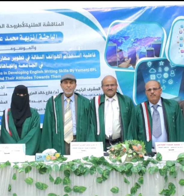 الدكتوراه للباحثة نزيهة محمد عبدالله في مناهج وطرائق تدريس اللغة الإنجليزية من كلية التربية صنعاء